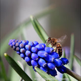 Muscari is inheems in Turkije, Griekenland, Bulgarije en de Kaukasus. De naam is afgeleid van het Griekse woord moschos wat musk betekent en refereert aan de geur. De soortnaam Armeniacum is afgeleid van Armenië, een bergachtig land in de Zuidelijke Kaukasus. Muscari Armeniacum is beter bekend als Blauw Druifje. Een vrolijke meerjarige bloeier met opvallend blauwe bloemen die makkelijk vermeerderd. Ieder plantje heeft twee tot drie langgerekte bladeren waarvan de achterkant donkergroen gekleurd is en de bovenkant een licht blauwachtig groene kleur heeft. De belvormige kobalt blauwe bloemen groeien in aarvormige trossen die later uitgroeien tot losbloemige trosjes. De bloempjes zijn versierd met een sierlijk klein wit randje wat het geheel een delicate uitstraling geeft. Na de bloei ontstaan er decoratieve zaaddozen. Het Blauwe Druifje houdt van een zonnige plek in een vochtig goed gedraineerde grond, maar doet het ook uitstekend onder bomen of heesters. Plant ze in getale voor een prachtig blauwe zee in uw tuin of vrolijk uw borders op met kleine groepjes. Bij uitstek geschikt om in een pot te planten voor zowel binnenshuis als buitenshuis.
