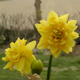 Delicate dubbelbloemige rijkgele dwergnarcis. De naam Tête Rosette is te danken aan de binnenste beker met fijn gegolfde bloemblaadjes. De bladeren van de buitenste kraag zijn licht naar achteren gevormd.
