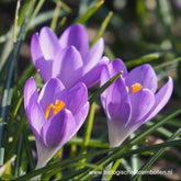 Vernoemd naar Mr. Barr, een Schotse kweker en handelaar in bollen die leefde in de 19e eeuw. Barr’s Purple heeft een zesbladige rijk gekleurde violette bloem met een iets bleker interieur. Een zilverachtige glans aan de buitenkant van de bloembladen geeft deze charmante krokus extra dimensie. Contrasterende grote goud oranje meeldraden en stamper temidden van een wit hartje maakt dat ze al in 1939 een prijswinnaar was. De bladeren zijn sierlijk open met smalle zilverachtige strepen. Opent en sluit haar bloembladeren naar gelang de zon schijnt of niet. Plant de krokus in clusters onder bomen, in borders, rotstuinen of potten. Of vrolijk uw gazon ermee op.
