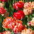 Gewone tulpen hebben meestal zes bloembladen. Dubbele tulpen daarentegen produceren rij na rij bloembladen wat resulteert in grote dikke bloemen die veel lijken op pioenrozen. Tulipa Gudoshnik Double is een dubbele tulp met grote zijdeachtige bloemen met cremegele, vermiljoen en koraal gekleurde bladeren. Geef haar een plekje in vruchtbare, medium doorlaatbare grond in de zon, zodat als de bloem nat is geregend de vele bloemblaadjes snel weer opdrogen. Met deze tulp voegt u charme en romantiek toe aan uw tuin.