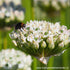 Allium Nigrum of Zwarte Look. Hoewel de naam doet vermoeden dat het om een zwarte bloem gaat, heeft ze haar naam te danken aan de kleine kraaltjes in het midden van de bloem. Als die opkomen zijn ze namelijk zwart. Later verkleuren ze langzaam naar kleine groene oogjes die een vrolijk accent geven aan de vele zacht witte stervormige bloempjes. De sierui uit het Midden Oosten heeft een half bolvormige bloemscherm op een stevige veerkrachtige steel. Elke plant heeft 3-6 lancetvormige platte bladeren. Na de bloei blijven zaadbollen nog lang decoratief. Ze mist de geur van ui of knoflook zoals de meeste andere in de haar groep. De Allium Multibulbosum, zoals ze ook bekend staat, brengt structuur, hoogte en kleur in uw tuin op het moment dat andere lentebloemen beginnen te vervagen. De insectentrekker bij uitstek zal vele weken uw tuin sieren, is onderhoudsarm en vermeerderd vrijelijk. Het erfstuk uit 1762 is een opvallende verschijning die in iedere tuin en vaas tot haar recht komt.